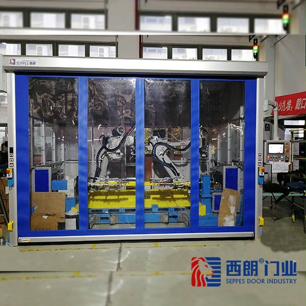 食品工廠刷洗間設(shè)計的快速卷簾門,采用拉鏈結(jié)構(gòu)密封+PVC高韌門簾+304不...